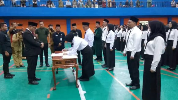 Pj Bupati Bangka, M.Haris resmi melantik tenaga PPPK yang dilaksanakan di GOR kelurahan surya timur kecamatan sungailiat, Kabupaten Bangka sebanyak 955 pegawai yang berada dilingkungan Pemkab Bangka dari 660 tenaga guru selebihnya tenaga teknis dan tenaga kesehatan.